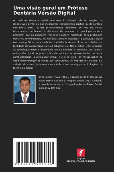 A medicina dentária digital refere-se à utilização de tecnologias ou dispositivos dentários que incorporam componentes digitais ou de controlo informático para realizar procedimentos dentários em vez de utilizar ferramentas mecânicas ou eléctricas. Os avanços na tecnologia dentária permitem que os pacientes recebam soluções modernas para problemas dentários convencionais. Os dentistas podem incorporar a tecnologia digital nas suas práticas para melhorar a eficiência do seu fluxo de trabalho e a facilidade de colaboração com os laboratórios. Neste artigo, são descritas as tecnologias digitais disponíveis para a dentisteria protética, tais como a radiografia digital, as prescrições electrónicas, as apresentações de casos computorizadas, o articulador virtual e o arco facial, as restaurações de desenho/construção assistida por computador, as impressões digitais e a seleção de cores, juntamente com ênfase nas vantagens e limitações da tecnologia digital.