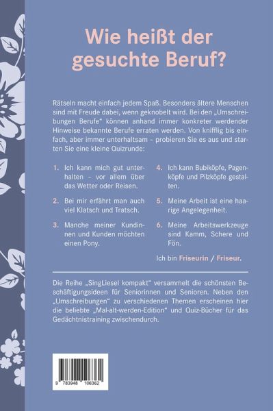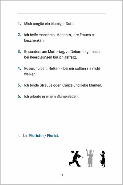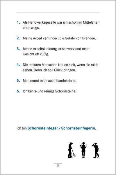 Rätseln macht einfach jedem Spaß. Besonders ältere Menschen sind mit Freude dabei, wenn geknobelt wird. Bei den "Umschreibungen Berufe" können anhand immer konkreter werdender Hinweise bekannte Berufe erraten werden. Von knifflig bis einfach, aber immer unterhaltsam - probieren Sie es aus und starten Sie eine kleine Quizrunde: