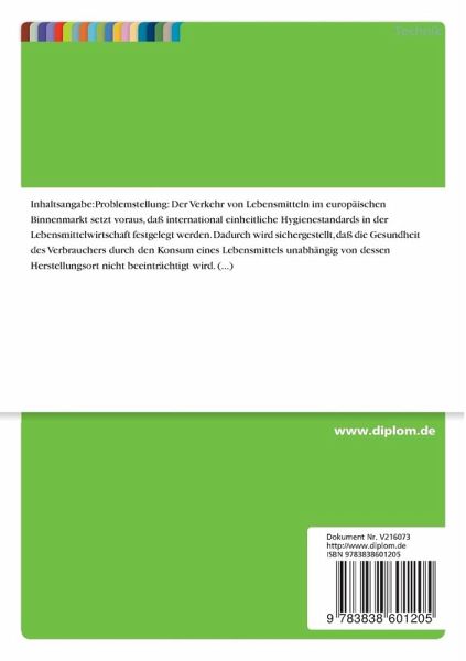 Der Verkehr von Lebensmitteln im europäischen Binnenmarkt setzt voraus, daß international einheitliche Hygienestandards in der Lebensmittelwirtschaft festgelegt werden. Dadurch wird sichergestellt, daß die Gesundheit des Verbrauchers durch den Konsum eines Lebensmittels unabhängig von dessen Herstellungsort nicht beeinträchtigt wird.