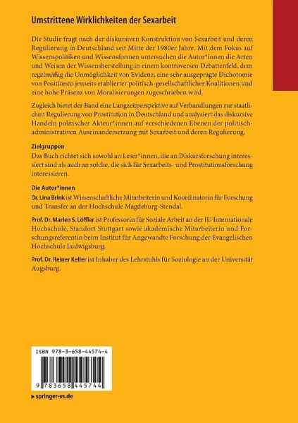 Das wissenssoziologisch-diskursanalytisch ausgerichtete Buch fragt nach der diskursiven Konstruktion von Sexarbeit und deren Regulierung in Deutschland. Im Fokus stehen Arten und Weisen der Herstellung von Wissen in diesem Debattenfeld, dem immer wieder eine Unmöglichkeit von Evidenz ("Dunkelfeld"), eine sehr ausgeprägte Dichotomie von Positionen jenseits etablierter Koalitionen und eine hohe Präsenz von Moral zugeschrieben wird. Die Studie verbindet diskursanalytische und problemsoziologische Perspektiven und untersucht vor diesem Hintergrund empirisch Wissenspolitiken und Wissensformen in der Verhandlung der Regulierung von Prostitution in Deutschland seit Mitte der 1980er Jahre. Einen zeitlichen Schwerpunkt bilden dabei Diskussionen und Prozesse rund um die Einführung des Prostituiertenschutzgesetzes im Jahre 2016. In den Blick genommen wird, wie die Faktizität von Sachlagen zum Phänomen Sexarbeit hergestellt, mit ethisch-moralischen Wertungen versehen und auf unterschiedlichen Ebenen in institutionell-organisatorische Bearbeitungen überführt wird - Prozesse, die durchgehend von Deutungskonflikten, Problematisierungs- und Entproblematisierungsstrategien begleitet werden. Als zentrale wissenspolitische Strategien werden dabei quer zu bestehenden Diskurskoalitionen Binarisierungen, Selbst-, Fremd- und Kontextverortungen sowie vorgenommene Grenzziehungen, eingebrachte Wissensformen und Versuche der Erzeugung von Resonanz näher betrachtet. Dies eröffnet aufschlussreiche Einsichten sowohl in die Komplexität der Aushandlungen wie auch in diejenige der verhandelten Wirklichkeits-Sachverhalte und vermeidet eine sozialwissenschaftliche Dopplung der im Untersuchungsfeld selbst bestehenden Diskursverhältnisse. Die Studie bietet zugleich eine Langzeitperspektive auf Verhandlungen zur staatlichen Regulierung von Prostitution in Deutschland und analysiert das diskursive Handeln politischer Akteur_innen auf verschiedenen Ebenen der politisch-administrativen Auseinandersetzung mit Sexarbeit und deren Regulierung: So werden sowohl die Bundespolitik als auch Landespolitiken und die umsetzende Ebene der Kommunen betrachtet. Empirische Grundlagen sind Dokumente aus der politisch-administrativen Bearbeitung der Regulierung von Prostitution, und Interviews mit zentralen Akteur_innen politischer Auseinandersetzungen um Sexarbeit und deren Regulierung. Das Buch richtet sich sowohl an Leser_innen, die an Diskursforschung interessiert sind als auch an solche, die sich für Sexarbeits- und Prostitutionsforschung interessieren.