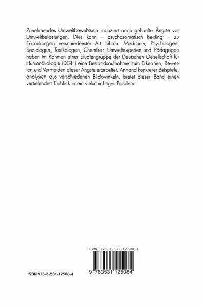 Zunehmendes Umweltbewußtsein induziert auch gehäufte Ängste von Umweltbelastungen. Dies kann - psychosomatisch bedingt - zu Erkrankungen verschiedenster Art führen. Mediziner, Psychologen, Soziologen, Toxikologen, Chemiker, Umweltexperten und Pädagogen haben im Rahmen einer Studiengruppe der Deutschen Gesellschaft fürHumanökologie (DGH) eine Bestandsaufnahme zum Erkennen, Bewerten und Vermeiden dieser Ängste erarbeitet. Anhand konkreter Beispiele, analysiert aus verschiedenen Blickwinkeln, bietet dieser Band einen vertiefenden Einblick in ein vielschichtiges Problem.