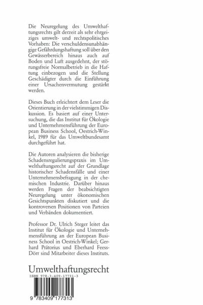 Die Neuregelung des Umwelthaftungsreehts gehOrt zu den ehrgeizigsten umweltpoliti sehen Vorgaben der laufenden Legislaturperiode. Sie hat seit ihrer Ankiindigung in der Regierungserklarung vom Man 1987 eine lebhafte und kontroverse Diskussion in Wissensehaft, Wirtsehaft und Politik ausgelost, die aueh mit der Vorlage eines Ge setzentwurfs im Februar 1990 noeh Hingst nieht beendet sein wird. Das vorliegende Bueh ist aus einer Untersuehung entstanden, die das Institut fUr Okologie und Untemehmensruhrung im Jahre 1989 rur das Umweltbundesamt dureh geruhrt hat. Ergebnisse aus Workshops mit Versieherungen und Untemehmen, Konfe renzen und parallel laufenden Arbeiten des Instituts haben in den vergangenen zwei Jahren den MeinungsbildungsprozeB der Verfasser in vielfaltiger Weise angeregt und sieh in der Veroffentliehung niedergesehlagen. Teil A beruht im wesentlichen auf der Studie "Empirisehe Untersuehung bisheriger Sehadensregulierungen im Umwelthaftungsreeht" (Forderkennzeiehen 101 06 037). Teil B wurde als okonomisehe Analyse versieherungstheoretiseher und -praktiseher Aspekte einer Umwelthaftung vollstandig neu bearbeitet. Hinzugerugt wurde als Teil C eine synoptisehe Darstellung zum Stand der Reform des Umwelthaftungsreehts, die dem Leser die Orientierung in der vielstimmigen Diskussion erleiehtem soH. Die Veroffentliehung soH einen Beitrag zur Diskussion der Neuregelung des Umwelt haftungsreehts leisten. Absieht ist es, dureh dokumentierte und interpretierte Fakten sowie theoretisehe Uberlegungen die Bedingungen zu klaren helfen, unter denen die Umwelthaftung die gewiinsehten Ziele erreichen oder aueh verfehlen kann.