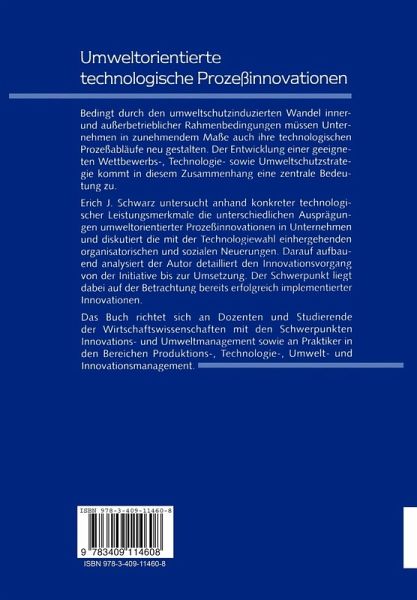 1 Einführung und Aufgabenstellung.- 1.1 Theoretischer Bezugsrahmen und Zielsetzungen der Arbeit.- 1.2 Aufbau der Arbeit.- 2 Definitionen und Abgrenzung des Untersuchungsgegenstandes.- 2.1 Der technologische Prozeß aus ökonomischer und naturwissenschaftlicher Sicht.- 2.2 Aspekte des Innovationsbegriffs.- 2.3 Umweltorientierte technologische Prozeßinnovation.- 2.4 Additive und integrierte technologische Prozeßinnovationen.- 3 Empirische Studien zum Untersuchungsgegenstand.- 3.1 Analyse ausgewählter Studien zu umweltorientierten technologischen Innovationen.- 3.2 Im Rahmen der Arbeit durchgeführte Studien.- 4 Integration umweltorientierter technologischer Prozeßinnovationen als Aufgabe der strategischen Unternehmensplanung.- 4.1 Situative Einflußfaktoren.- 4.2 Umweltschutz im unternehmerischen Zielsystem.- 4.3 Umweltorientierte Unternehmensstrategie.- 4.4 Implikationen umweltorientierter Prozeßinnovationen auf die Personal- und Organisationsstruktur.- 5 Der Innovationsprozeß bei umweltorientierten Prozeßinnovationen.- 5.1 Phasen des Innovationsprozesses.- 5.2 Empirische Analyse ausgewählter Aspekte beim Innovationsprozeß umweltorientierter Prozeßinnovationen.- 5.3 Verhalten der Akteure bei umweltorientierten Prozeßinnovationen.- 6 Zusammenfassung.- Anhang: Verwendeter Fragebogen.