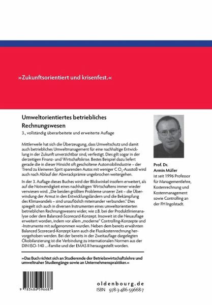 "Müller vermittelt vielfältige Impulse, bietet einen fundierten Themenüberblick und vertieft das einschlägige Problemwissen. Das Buch leistet einen wertvollen Beitrag zur allgemeinen Diskussion von Umweltorientierung und Nachhaltigkeit in Unternehmen und Wirtschaft." Controller-Magazin, 36. Jg., Jan./ Feb. 2011, Ausgabe 1,