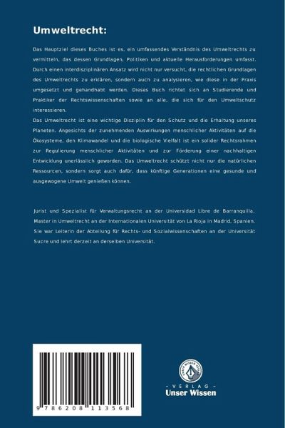 Das Hauptziel dieses Buches ist es, ein umfassendes Verständnis des Umweltrechts zu vermitteln, das dessen Grundlagen, Politiken und aktuelle Herausforderungen umfasst. Durch einen interdisziplinären Ansatz wird nicht nur versucht, die rechtlichen Grundlagen des Umweltrechts zu erklären, sondern auch zu analysieren, wie diese in der Praxis umgesetzt und gehandhabt werden. Dieses Buch richtet sich an Studierende und Praktiker der Rechtswissenschaften sowie an alle, die sich für den Umweltschutz interessieren.Das Umweltrecht ist eine wichtige Disziplin für den Schutz und die Erhaltung unseres Planeten. Angesichts der zunehmenden Auswirkungen menschlicher Aktivitäten auf die Ökosysteme, den Klimawandel und die biologische Vielfalt ist ein solider Rechtsrahmen zur Regulierung menschlicher Aktivitäten und zur Förderung einer nachhaltigen Entwicklung unerlässlich geworden. Das Umweltrecht schützt nicht nur die natürlichen Ressourcen, sondern sorgt auch dafür, dass künftige Generationeneine gesunde und ausgewogene Umwelt genießen können.