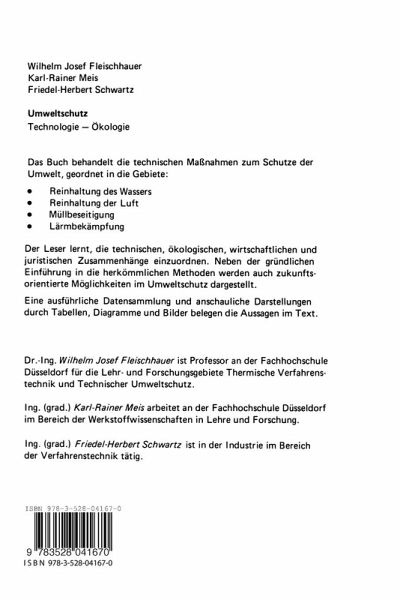 Die Zahl der VerOffentlichungen auf dem Gebiet der Umwelttechnik ist in den letzten Jahren stark angewachsen, so daB es selbst flit den Fachmann auBerst schwierig ist, das Spezielle von grundsatzlichen technologischen Entwicklungen zu trennen. Die Kenntnis von den Zusammenhangen der verschiedenen technischen Teilgebiete des Umweltschutzes ist aber dringend notwendig, damit Erfolge in dem einen Sektor nicht mit Milierfolgen in dem anderen Gebiet erkauft werden. Das Buch "Umweltschutz" behandelt die klassischen Disziplinen des Umweltschutzes: Reinhaltung des Wassers, Reinhaltung der Luft, Mi.illbeseitigung, Liirmbekampfung. Diese Gebiete sind im Offentlichen Interesse gerade wegen der kontroversen Diskussion urn die Kernenergie in den letzten Jahren zu kurz gekommen. Das Buch ist ein Leitfaden fUr Studierende technischer Fachrichtungen an Fachschulen, Fachhochschulen und Technischen Universitaten durch die verschiedenen Fachgebiete des Umweltschutzes. Die umfangreiche Literaturliste ermoglicht die Vertiefung in die komplexe Problematik. Mit dieser einfUhrenden Darstellung werden auch schon lange in der Industrie tatige . Ingenieure angesprochen, die auf Grund neuer Bundes- und Landesgesetze von ihrer Firma zum Immissionsschutz-, zum Abwasser- oder zum Abfallbeauftragten ernannt werden und die sich jetzt schnell grundlegende Kenntnisse in der Umwelttechnik aneignen wollen. Ebenfalls richtet sich dieser Band an die Mitglieder der verschiedenen Biirgerinitiativen und will Verstandnis flit die technologischen, okologischen und okonomischen Zusammen hiinge wecken.