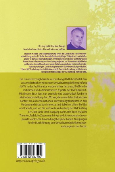 Die Umweltverträglichkeitsuntersuchung (UVU) beinhaltet den wissenschaftlichen Kern einer Umweltverträglichkeitsprüfung (UVP). In der Fachliteratur wurden bisher fast ausschließlich die rechtlichen und administrativen Aspekte der UVP diskutiert. Mit diesem Buch liegt nun erstmals eine systematisch fundierte Methodendarstellung der UVU vor, die sowohl den historischen Kontext als auch internationale Entwicklungstendenzen in den Vordergrund rückt. Von Interesse sind dabei vor allem die USA und Kanada, von wo die weltweite Verbreitung der UVP Anfang der 70er Jahre ihren Ausgang nahm. Das Buch erläutert Theorien, fachliche Zusammenhänge und Anwendungsschwerpunkte. Zahlreiche Anwendungsbeispiele bieten Anregungen für die Durchführung von Umweltverträglichkeitsuntersuchungen in der Praxis.
