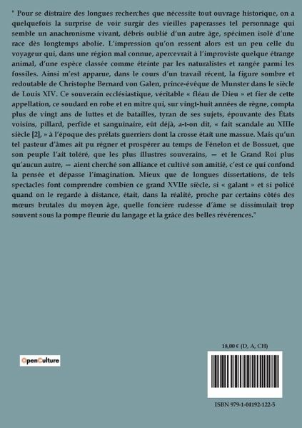 L'article "Un Allié de Louis XIV" de Pierre de Ségur explore la vie et les actions de Christophe Bernard von Galen, prince-évêque de Munster, au XVIIe siècle. Von Galen, surnommé le "fléau de Dieu", est décrit comme un personnage anachronique, un prélat guerrier dans une époque marquée par des figures comme Fénelon et Bossuet. Son règne est caractérisé par des conflits incessants, tant internes qu'externes, et par une déviation démesurée. Après avoir accédé à l'épiscopat de Munster par des moyens peu orthodoxes, il impose son autorité par la force, opérant en réprimant violemment les révoltes de ses sujets. Sa réputation de tyran et de stratège militaire se répand en Europe, attirant l'attention de Louis XIV, qui voit en lui un allié potentiel contre la Hollande. Von Galen s'engage dans des alliances mouvantes, collaborant avec la France, tout en poursuivant ses propres changements territoriaux. Son expertise en artillerie et son goût pour la guerre le rendent redoutable, mais aussi imprévisible. L'article met en lumière les contradictions de ce personnage, à la fois homme d'Église et chef militaire, et son impact sur la politique européenne de l'époque.