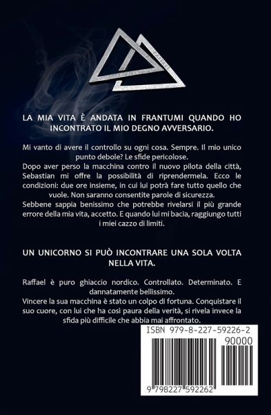 La mia vita è andata in frantumi quando ho incontrato il mio degno avversario. Mi vanto di avere il controllo su ogni cosa. Sempre. Il mio unico punto debole? Le sfide pericolose. Dopo aver perso la macchina contro il nuovo pilota della città, Sebastian mi offre la possibilità di riprendermela. Ecco le condizioni: due ore insieme, in cui lui potrà fare tutto quello che vuole. Non saranno consentite parole di sicurezza. Sebbene sappia benissimo che potrebbe rivelarsi il più grande errore della mia vita, accetto. E quando lui mi bacia, raggiungo tutti i miei cazzo di limiti. Un unicorno si può incontrare una sola volta nella vita. Raffael è puro ghiaccio nordico. Controllato. Determinato. E dannatamente bellissimo. Vincere la sua macchina è stato un colpo di fortuna. Conquistare il suo cuore, con lui che ha così paura della verità, si rivela invece la sfida più difficile che abbia mai affrontato. ESTRATTO: Ha le dita ancora attorno ai miei polsi per tenerli fermi, anche se ovviamente non riesco comunque a muoverli. Il suo calore mi penetra fin dentro la pelle. "Qual è la tua parola di sicurezza?" fa con voce roca, fissandomi con un'occhiata profonda. Merda! Rido. "Non sono affari tuoi. Ora, liberami." ATTENZIONE: Questa storia d'amore tra ragazzi è più molto più romantica di quanto ci si possa aspettare, ma non è adatta ai minori di 18 anni. La trama principale è di impronta gay, ma occasionalmente sono presenti anche delle scene di sesso etero. Perdonatemi per il cliffhanger! Serie completa: Un amore inaspettato Un cuore in pericolo Una notte per cambiare