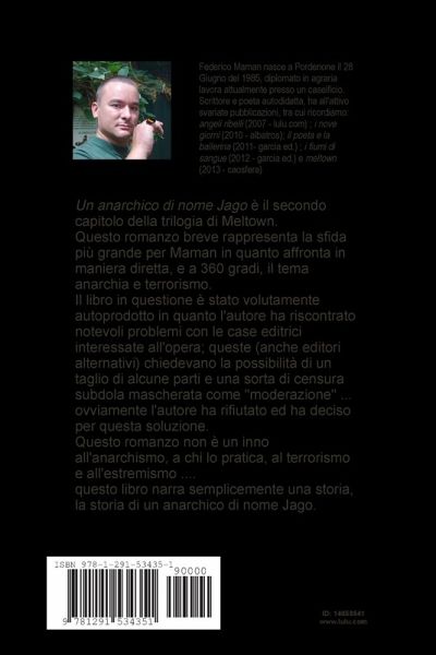 "Un anarchico di nome Jago" è il secondo capitolo della trilogia di "Meltown",iniziata nel 2013. In questo romanzo si narra la vita di Jago (protagonista del primo romanzo da cui prende il nome la trilogia), attraverso i suoi occhi Maman ci mostra la libertà e l'anarchia in tutta la loro cruda bellezza e violenza.