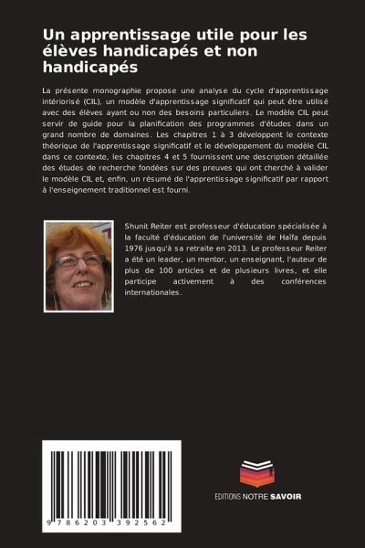 La présente monographie propose une analyse du cycle d'apprentissage intériorisé (CIL), un modèle d'apprentissage significatif qui peut être utilisé avec des élèves ayant ou non des besoins particuliers. Le modèle CIL peut servir de guide pour la planification des programmes d'études dans un grand nombre de domaines. Les chapitres 1 à 3 développent le contexte théorique de l'apprentissage significatif et le développement du modèle CIL dans ce contexte, les chapitres 4 et 5 fournissent une description détaillée des études de recherche fondées sur des preuves qui ont cherché à valider le modèle CIL et, enfin, un résumé de l'apprentissage significatif par rapport à l'enseignement traditionnel est fourni.