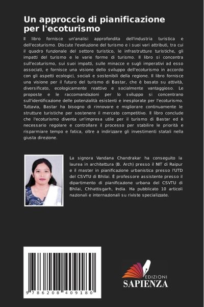 Il libro fornisce un'analisi approfondita dell'industria turistica e dell'ecoturismo. Discute l'evoluzione del turismo e i suoi vari attributi, tra cui il quadro funzionale del settore turistico, le infrastrutture turistiche, gli impatti del turismo e le varie forme di turismo. Il libro si concentra sull'ecoturismo, sui suoi impatti, sulle minacce e sugli imperativi ad esso associati, e fornisce una visione dello sviluppo dell'ecoturismo in accordo con gli aspetti ecologici, sociali e sostenibili della regione. Il libro fornisce una visione per il futuro del turismo di Bastar, che è basato su attività, diversificato, ecologicamente reattivo e socialmente vantaggioso. Le proposte e le raccomandazioni per lo sviluppo si concentrano sull'identificazione delle potenzialità esistenti e inesplorate per l'ecoturismo. Tuttavia, Bastar ha bisogno di rinnovare e migliorare continuamente le strutture turistiche per sostenere il mercato competitivo. Il libro conclude che l'ecoturismo diventa un'impresa utile per il turismo di Bastar ed è necessario regolare e controllare il processo per stabilire le priorità e risparmiare tempo e fatica, oltre a indirizzare gli investimenti statali nella giusta direzione.