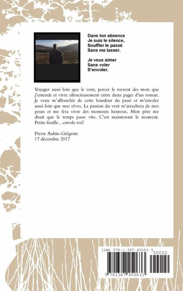 Voyager aussi loin que le vent, percer le torrent des mots que j'entends et vivre silencieusement entre deux pages d'un roman. Je veux m'affranchir de cette lourdeur du pass¿t m'envoler aussi loin que mes r¿s. La passion du vent m'arrachera de mes peurs et me fera vivre des moments heureux. Mon p¿ me disait que le temps passe vite. C'est maintenant le moment. Petite feuille...envole-toi!