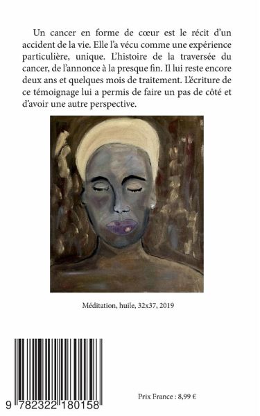 Un cancer en forme de coeur est le récit d'un accident de la vie. Elle l'a vécu comme une expérience particulière, unique. L'histoire de la traversée du cancer, de l'annonce à la presque fin. Il lui reste encore deux ans et quelques mois de traitement. L'écriture de ce témoignage lui a permis de faire un pas de côté et d'avoir une autre perspective.