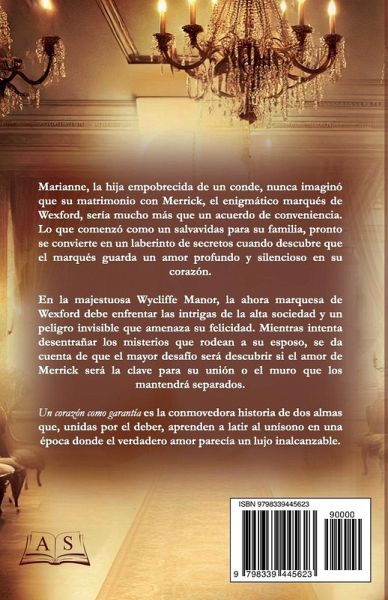 Tras la muerte de su madre y con un padre devastado, Marianne Roselind se ve obligada a tomar las riendas de la familia, manteniendo su dignidad a pesar de la precaria situación económica que los asfixia. >La oportunidad de salvar a su familia llega en forma de una proposición inesperada: un matrimonio con Merrick Carrington, el imponente y enigmático marqués de Wexford. Para Marianne, esta unión podría significar la salvación, pero también implica sacrificar su libertad. A pesar de todo, decide casarse y buscar la forma de ser feliz. Cuando ella comienza a descubrir el motivo por el que Merrick decidió elegirla como esposa, llega un peligro que creará un terrible dolor a ambos. Ahora, Marianne y Merrick deberán enfrentar desafíos que pondrán a prueba su amor y su capacidad para mantenerse unidos.