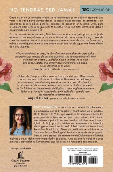 En esta obra, Patricia Namnún nos muestra cómo a veces el alma de una mujer se encuentra en un desierto espiritual, que en ocasiones ocurre sin darnos cuenta, qué razones hay para estar allí y cómo podemos caminar hacia Aquel que puede hacer correr ríos de agua viva en nuestro interior una vez más