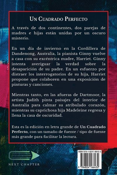 A través de dos continentes, dos parejas de madres e hijas están unidas por un oscuro misterio. En un día de invierno en la Cordillera de Dandenong, Australia, la pianista Ginny vuelve a casa con su excéntrica madre, Harriet. Ginny intenta averiguar la verdad sobre la desaparición de su padre. En un esfuerzo por distraer los interrogatorios de su hija, Harriet propone que colaboren en una exposición de pinturas y canciones. Mientras tanto, en las afueras de Dartmoor, la artista Judith pinta paisajes del interior de Australia para calmar su atribulado corazón, mientras su caprichosa hija Madeleine regresa y llena la casa de oscuridad. Esta es la edición en letra grande de Un Cuadrado Perfecto, con un tamaño de fuente / tipo de fuente más grande para facilitar la lectura.