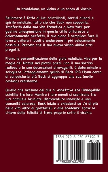Un brontolone, un vicino e un sacco di vischio. Bellamere è fatta di luci scintillanti, sorrisi allegri e spirito natalizio-tutto ciò che Beck non sopporta. Trasferito dalla sua vita frenetica a New York per gestire un'espansione in questa città pittoresca e dolorosamente perfetta, il suo piano è semplice: fare il lavoro, evitare i locali e andarsene il più velocemente possibile. Peccato che il suo nuovo vicino abbia altri progetti. Flynn, la personificazione della gioia natalizia, vive per la magia del Natale nei piccoli paesi. Con il suo sorriso radioso e le sue decorazioni stravaganti, è determinato a sciogliere l'atteggiamento gelido di Beck. Più Flynn cerca di conquistarlo, più Beck si aggrappa alla sua (molto costosa) resistenza. Quello che nessuno dei due si aspettava era l'innegabile scintilla tra loro. Mentre i loro mondi si scontrano tra luci natalizie bruciate, disavventure innevate e una comunità calorosa, Beck inizia a chiedersi se c'è di più nella vita oltre ai grattacieli e alle scadenze. Forse la chiave della felicità si trova proprio sotto il vischio.