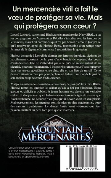 Lowell Lockard, surnommé Black, ancien membre des Navy SEAL, a vu ses compagnons des Mercenaires Rebelles s'installer avec les femmes de leurs rêves, mais il est convaincu qu'il n'a pas besoin d'amour. Jusqu'à ce qu'il reçoive un appel de Harlow Reese, responsable d'un refuge pour femmes de la région, et commence à reconsidérer la question. Harlow demande à Lowell de donner aux femmes du refuge, victimes de harcèlement constant de la part d'une bande de voyous, des cours d'autodéfense. Elle ne s'attendait pas à ce qu'il se soucie autant de sa sécurité, pourtant maintenant, il insiste résolument pour l'accompagner dans ses trajets quotidiens entre chez elle et son lieu de travail. Cette délicate attention n'est pas pour déplaire à Harlow... surtout de la part de son ancien coup de c¿ur d'adolescence. Malgré sa malchance en matière amoureuse, depuis qu'elle a revu Black, Harlow remet en question le célibat qu'elle a fini par s'imposer. Beau garçon et difficile à oublier, le jeune homme est devenu un véritable étalon. Et il se pourrait que Harlow soit exactement le type de femme que Black recherche. Sa sécurité n'est pas qu'un devoir, c'est un vrai plaisir. Malheureusement, les menaces sont de plus en plus inquiétantes, pour des raisons mystérieuses. Le danger brûle aussi vivement que leur passion, mettant en péril bien plus que leurs c¿urs . ** Un défenseur pour Harlow est le quatrième tome de la série Mercenaires Rebelles. Il peut être lu séparément, mais nous vous recommandons de lire les tomes dans l'ordre afin de profiter au mieux de la série.