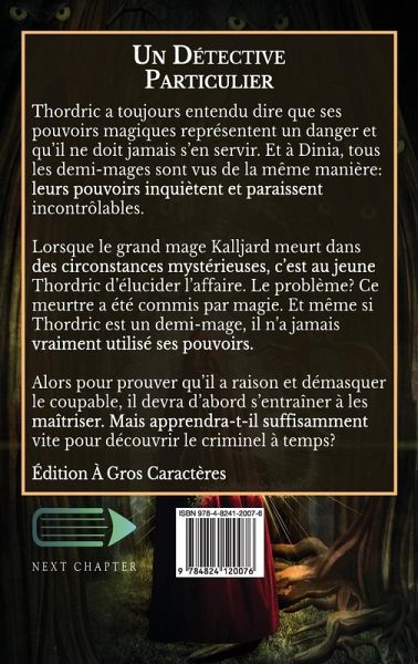 Toute sa vie, on a dit à Thordric que sa magie était dangereuse et qu'il ne devait jamais l'utiliser. Partout à Dinia, les demi-sorciers sont traités de la même manière, leur magie étant qualifiée de dangereuse et d'incontrôlable. Lorsque le haut sorcier Kalljard meurt dans des circonstances mystérieuses, c'est au jeune Thordric qu'il revient de résoudre l'affaire. Le problème ? L'acte a été commis par magie, et bien que Thordric soit un demi-sorcier, il n'a jamais utilisé pleinement ses pouvoirs. Pour prouver qu'il a raison et trouver le responsable, Thordric doit apprendre à contrôler ses propres pouvoirs. Mais pourra-t-il apprendre assez vite, et trouver le coupable à temps ? Il s'agit de l'édition en gros caractères de Un Détective Particulier, avec une police de caractères plus grande pour faciliter la lecture.