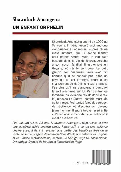Shawnluck Amangetta est né en 1999 au Suriname. Il mène pendant six ans une vie paisible et épanouie, auprès d'une mère aimante, qui lui donne bientôt deux petites soeurs. Mais un jour, tout bascule. Arraché à son cocon familial, il est envoyé en Guyane, où réside son père. Le petit garçon doit désormais vivre avec cet homme qu'il ne connaît pas, dans un pays qui lui est étranger. Pourquoi ce changement de vie ? Il ne le saura jamais. Pas plus qu'il ne comprendra pourquoi le sort s'acharne sur lui. Car de drames familiaux en événements déstabilisants, la jeunesse de Shawn semble marquée au fer rouge. Pourtant, à force de courage, de résilience et d'espérance, devenu jeune homme, il saura trouver la sérénité et l'accomplissement dans un métier où il excelle : la coiffure.