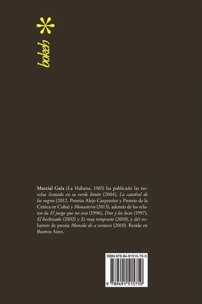 Marcial Gala (La Habana, 1965) ha publicado las novelas Sentada en su verde limón (2004), La catedral de los negros (2012, Premio Alejo Carpentier y Premio de la Crítica en Cuba) y Monasterio (2013), además de los relatos de El juego que no cesa (1996), Dios y los locos (1997), El hechizado (2002) y Es muy temprano (2010), y del volumen de poesía Moneda de a centavo (2010). Reside en Buenos Aires.