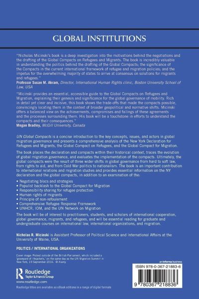 UN Global Compacts is a concise introduction to the key concepts, issues, and actors in global migration governance and presents a comprehensive analysis of the New York Declaration for Refugees and Migrants, the Global Compact on Refugees, and the Global Compact for Migration.