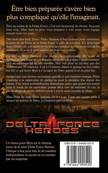 Être un soldat de la Delta Force, c'est voir beaucoup de choses. Souvent bien trop. Mais rien ne peut vous préparer à voir toute votre équipe mourir sous vos yeux… ¿¿ Des mois plus tard, Dane « Fish » Munroe se bat toujours pour surmonter la perte de ses frères de la Delta Force et celle de son bras. Il a déménagé dans l'Idaho, où son mode de vie isolé fait empirer les choses au lieu de les améliorer. Non qu'il reste quelqu'un pour s'en soucier.¿¿ En fait, si, Bryn Hartwell s'en soucie. Subrepticement, elle essaie de faciliter un peu la vie de cet homme mystérieux qui vient s'approvisionner tard au supermarché où elle travaille, tout cela pour ne récolter que des réprimandes. N'empêche, il est à l'évidence abîmé et quelqu'un doit veiller sur lui, ce qui incite Bryn à s'occuper de Dane quand il est au plus bas. ¿¿Intrigué par cette femme excentrique, gentille et aux manières étranges, Dane s'autorise à se rapprocher de quelqu'un pour la première fois depuis des lustres. Une erreur potentiellement dramatique, parce que quand son intérêt pour le mode de vie survivaliste pousse Bryn vers un terroriste du cru, la perdre risque de mettre définitivement à mal la santé mentale de Dane.¿¿ Mais Delta un jour, Delta toujours. Et il y a au Texas une équipe prête à assurer les arrières de Dane, à n'importe quel moment.¿¿ ** Un héros pour Bryn est le sixième livre de la série Delta Force Heroes. Chaque tome est indépendant des autres. Il ne s'achèvera donc pas sur une question laissée en suspens.¿