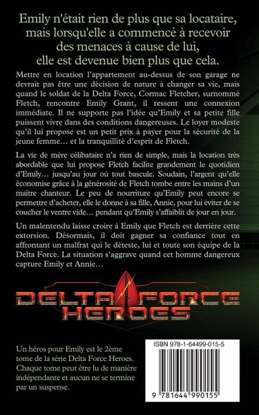 Mettre en location l'appartement au-dessus de son garage ne devrait pas être une décision de nature à changer sa vie, mais quand le soldat de la Delta Force, Cormac Fletcher, surnommé Fletch, rencontre Emily Grant, il ressent une connexion immédiate. Il ne supporte pas l'idée qu'Emily et sa petite fille puissent vivre dans des conditions dangereuses. Le loyer modeste qu'il lui propose est un petit prix à payer pour la sécurité de la jeune femme… et la tranquillité d'esprit de Fletch. La vie de mère célibataire n'a rien de simple, mais la location très abordable que lui propose Fletch facilite grandement le quotidien d'Emily… jusqu'au jour où tout bascule. Soudain, l'argent qu'elle économise grâce à la générosité de Fletch tombe entre les mains d'un maître chanteur. Le peu de nourriture qu'Emily peut encore se permettre d'acheter, elle le donne à sa fille, Annie, pour lui éviter de se coucher le ventre vide… pendant qu'Emily s'affaiblit de jour en jour. Un malentendu laisse croire à Emily que Fletch est derrière cette extorsion. Désormais, il doit gagner sa confiance tout en affrontant un malfrat qui le déteste, lui et toute son équipe de la Delta Force. La situation s'aggrave quand cet homme dangereux capture Emily et Annie… ** Un héros pour Emily est le deuxième tome de la série Delta Force Heroes. Il peut se lire de manière indépendante, mais il est recommandé de lire les tomes dans l'ordre pour profiter au maximum de la série.