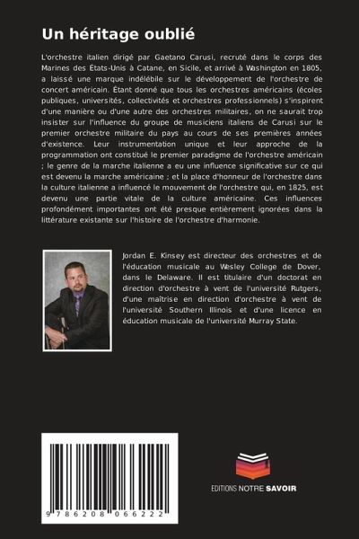 L'orchestre italien dirigé par Gaetano Carusi, recruté dans le corps des Marines des États-Unis à Catane, en Sicile, et arrivé à Washington en 1805, a laissé une marque indélébile sur le développement de l'orchestre de concert américain. Étant donné que tous les orchestres américains (écoles publiques, universités, collectivités et orchestres professionnels) s'inspirent d'une manière ou d'une autre des orchestres militaires, on ne saurait trop insister sur l'influence du groupe de musiciens italiens de Carusi sur le premier orchestre militaire du pays au cours de ses premières années d'existence. Leur instrumentation unique et leur approche de la programmation ont constitué le premier paradigme de l'orchestre américain ; le genre de la marche italienne a eu une influence significative sur ce qui est devenu la marche américaine ; et la place d'honneur de l'orchestre dans la culture italienne a influencé le mouvement de l'orchestre qui, en 1825, est devenu une partie vitale de la culture américaine. Ces influences profondément importantes ont été presque entièrement ignorées dans la littérature existante sur l'histoire de l'orchestre d'harmonie.