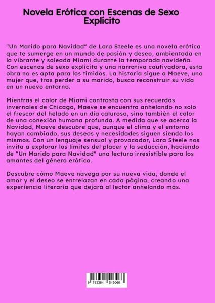 "Un Marido para Navidad" de Lara Steele es una novela erótica que te sumerge en un mundo de pasión y deseo, ambientada en la vibrante y soleada Miami durante la temporada navideña. Con escenas de sexo explícito y una narrativa cautivadora, esta obra no es apta para los tímidos. La historia sigue a Maeve, una mujer que, tras perder a su marido, busca reconstruir su vida en un nuevo entorno. Mientras el calor de Miami contrasta con sus recuerdos invernales de Chicago, Maeve se encuentra anhelando no solo el frescor del helado en un día caluroso, sino también el calor de una conexión humana profunda. A medida que se acerca la Navidad, Maeve descubre que, aunque el clima y el entorno hayan cambiado, sus deseos y necesidades siguen siendo los mismos. Con un lenguaje sensual y provocador, Lara Steele nos invita a explorar los límites del placer y la seducción, haciendo de "Un Marido para Navidad" una lectura irresistible para los amantes del género erótico. Descubre cómo Maeve navega por su nueva vida, donde el amor y el deseo se entrelazan en cada página, creando una experiencia literaria que dejará al lector anhelando más.