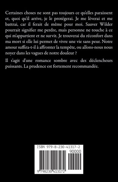Certaines choses ne sont pas toujours ce qu'elles paraissent et, quoi qu'il arrive, je le protégerai. Je me lèverai et me battrai, car il ferait de même pour moi. Sauver Wilder pourrait signifier me perdre, mais personne ne touche à ce qui m'appartient et ne survit. Je trouverai du réconfort dans ma mort si elle lui permet de vivre une vie sans peur. Notre amour suffira-t-il à affronter la tempête, ou allons-nous nous noyer dans les vagues de notre douleur ? Il s'agit d'une romance sombre avec des déclencheurs puissants. La prudence est fortement recommandée.
