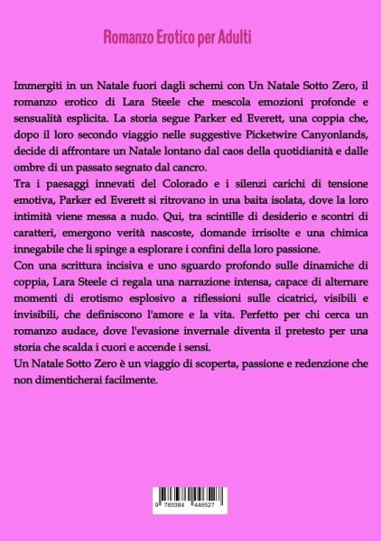 Immergiti in un Natale fuori dagli schemi con Un Natale Sotto Zero, il romanzo erotico di Lara Steele che mescola emozioni profonde e sensualità esplicita. La storia segue Parker ed Everett, una coppia che, dopo il loro secondo viaggio nelle suggestive Picketwire Canyonlands, decide di affrontare un Natale lontano dal caos della quotidianità e dalle ombre di un passato segnato dal cancro.Tra i paesaggi innevati del Colorado e i silenzi carichi di tensione emotiva, Parker ed Everett si ritrovano in una baita isolata, dove la loro intimità viene messa a nudo. Qui, tra scintille di desiderio e scontri di caratteri, emergono verità nascoste, domande irrisolte e una chimica innegabile che li spinge a esplorare i confini della loro passione.Con una scrittura incisiva e uno sguardo profondo sulle dinamiche di coppia, Lara Steele ci regala una narrazione intensa, capace di alternare momenti di erotismo esplosivo a riflessioni sulle cicatrici, visibili e invisibili, che definiscono l'amore e la vita. Perfetto per chi cerca un romanzo audace, dove l'evasione invernale diventa il pretesto per una storia che scalda i cuori e accende i sensi.Un Natale Sotto Zero è un viaggio di scoperta, passione e redenzione che non dimenticherai facilmente.
