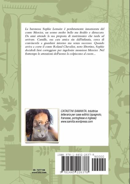 LA BARONESSA SOPHIE LEMAIRE SOGNA DI SPOSARE IL CONTE CHARLES MERCIER, DI CUI E' INNAMORATA DA MOLTI ANNI. E' UN UOMO MOLTO BELLO, DALLA FACCIA ANGELICA MA IL CUORE MOLTO FREDDO E DISTACCATO. CAMILLE, LA SUA PIU' CARA AMICA E CONFIDENTE, DA TEMPO CERCA DI CONVINCERLA A GUARDARE ALTROVE MA LA SUA COCCIUTAGGINE NON HA PARI. QUANDO ARRIVA A CORTE IL CONTE ROLAND CHEVALIER, NOTO IN TUTTA LA FRANCIA PER LA SUA FAMA DI DONGIOVANNI, DECIDE DI FARSI CORTEGGIARE PER INGELOSIRE MONSIEUR CHARLES. NEL FRATTEMPO LE ATTENZIONI DI QUESTO ATTRAENTE LIBERTINO FANNO BRECCIA NEL SUO CUORE... -------------------------------------------------- ACQUISTANDO O SCARICANDO QUESTO LIBRO DONERETE 50 CENTESIMI ALL'ASSOCIAZIONE IHP PER LA TUTELA E LA SALVEZZA DI TUTTI GLI EQUINI MALTRATTATI www.horseprotection.it GRAZIE!