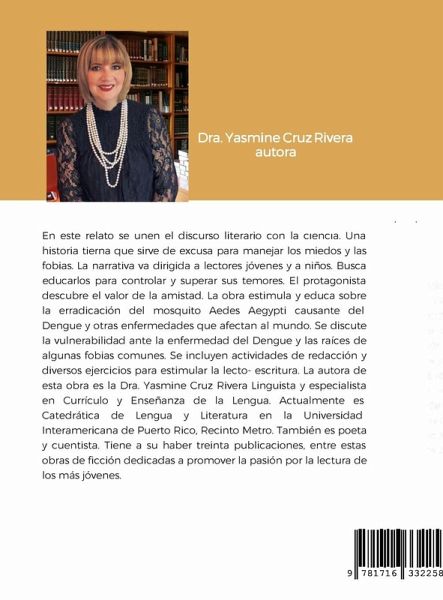 En este relato se unen el discurso literario con la ciencia. Una historia tierna que sirve de excusa para manejar los miedos y las fobias. La narrativa va dirigida a lectores jóvenes y a niños. Busca educarlos para controlar y superar sus temores. El protagonista descubre el valor de la amistad. La obra estimula y educa sobre la erradicación del mosquito Aedes Aegypti causante del Dengue y otras enfermedades que afectan al mundo. Se discute la vulnerabilidad ante la enfermedad del Dengue y las raíces de algunas fobias comunes. La obra incluye actividades y ejercicios para estimular la lecto-escritura.