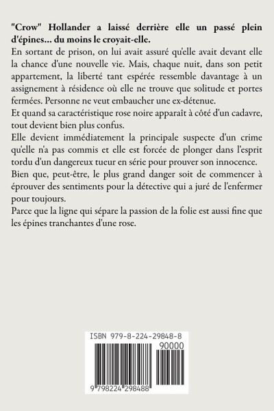 "Crow" Hollander a laissé derrière elle un passé plein d'épines... du moins le croyait-elle. En sortant de prison, on lui avait assuré qu'elle avait devant elle la chance d'une nouvelle vie. Mais, chaque nuit, dans son petit appartement, la liberté tant espérée ressemble davantage à un assignement à résidence où elle ne trouve que solitude et portes fermées. Personne ne veut embaucher une ex-détenue. Et quand sa caractéristique rose noire apparaît à côté d'un cadavre, tout devient bien plus confus. Elle devient immédiatement la principale suspecte d'un crime qu'elle n'a pas commis et elle est forcée de plonger dans l'esprit tordu d'un dangereux tueur en série pour prouver son innocence. Bien que, peut-être, le plus grand danger soit de commencer à éprouver des sentiments pour la détective qui a juré de l'enfermer pour toujours. Parce que la ligne qui sépare la passion de la folie est aussi fine que les épines tranchantes d'une rose.