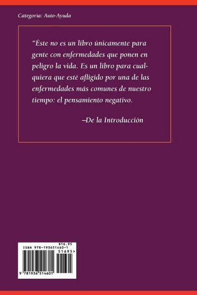 Text in Spanish. A way to battle negative thinking, this book offers techniques for forming a positive perspective on life. The author explains how to separate opinion from fact and how to discern the difference between a negative reality and negative thinking. The book includes inspiring quotes from people such as Franklin D. Roosevelt, Daniel Webster, and George Bernard Shaw, and its format means that it's always available to educate and enlighten, even if it's not being read straight through.