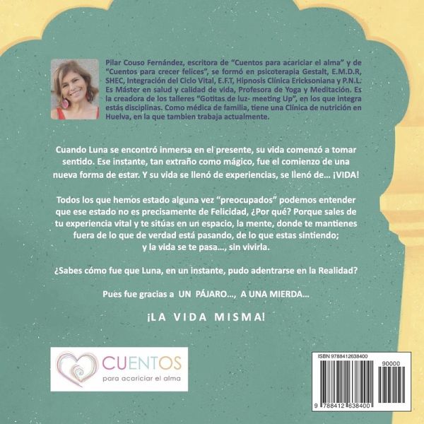 Es un álbum ilustrado para jóvenes y adultos que nos resalta la importancia de estar en el presente experienciando tu propia vida. >Todos los que hemos estado alguna vez "preocupados" podemos entender que ese estado no es precisamente de felicidad, ¿ porqué? porque sales de tu experiencia vital y te sitúas en un espacio, la mente, donde tu te mantienes fuera de lo que de verdad está pasando, de lo que estas sintiendo; y la vida se te pasa... sin vivirla. ¿ Sabes como fue que Luna, en un instante pudo adentrarse en la Realidad? Pues fue gracias a un pájaro..., a una mierda... ¡LA VIDA MISMA!
