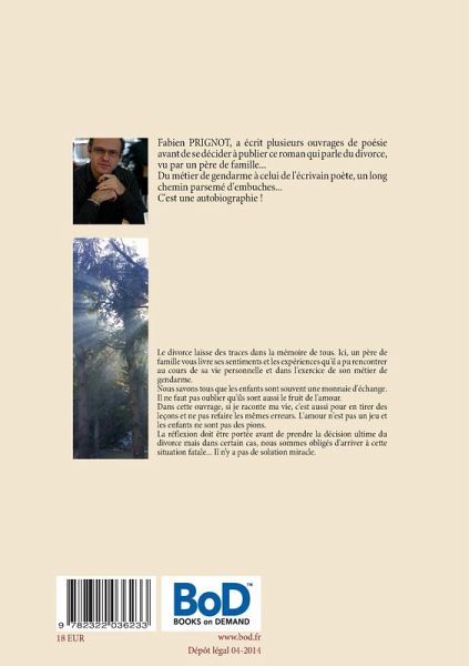 L'auteur a voulu dans l'ouvrage parlé du divorce et plus particulièrement les siens. Au cours de sa carrière de gendarme, il a pu se rendre compte combien le divorce était destructeur, jusqu'à détruire parfois une vie. Il n'y a pas de solution miracle pour divorcer mais il faut surtout penser aux enfants qui sont les premiers à être touchés. Quand aux parents, ils ne doivent pas perdre à l'esprit que l'enfant est le fruit de l'amour, non un objet.Le père, géniteur, n'a que peu de droit. La situation des enfants et souvent leurs désirs ne sont pas pris en considération.