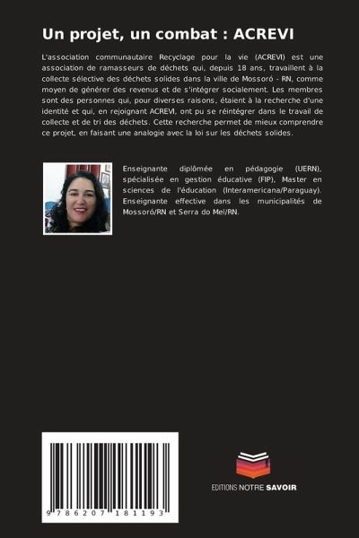 L'association communautaire Recyclage pour la vie (ACREVI) est une association de ramasseurs de déchets qui, depuis 18 ans, travaillent à la collecte sélective des déchets solides dans la ville de Mossoró - RN, comme moyen de générer des revenus et de s'intégrer socialement. Les membres sont des personnes qui, pour diverses raisons, étaient à la recherche d'une identité et qui, en rejoignant ACREVI, ont pu se réintégrer dans le travail de collecte et de tri des déchets. Cette recherche permet de mieux comprendre ce projet, en faisant une analogie avec la loi sur les déchets solides.