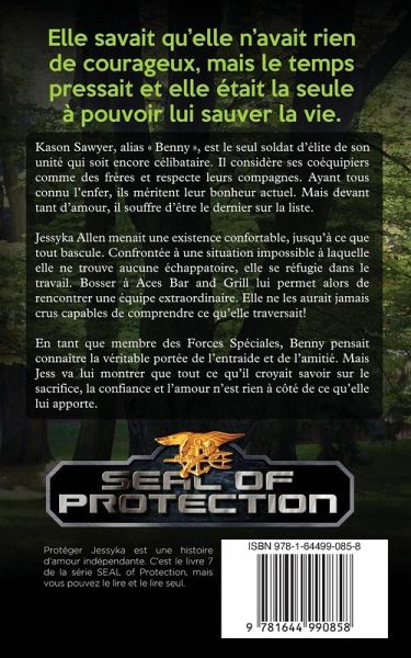 Kason Sawyer, alias ¿Benny¿, est le seul soldat d'élite de son unité qui soit encore célibataire. Il considère ses coéquipiers comme des frères et respecte leurs compagnes. Ayant tous connu l'enfer, ils méritent leur bonheur actuel. Mais devant tant d'amour, il souffre d'être le dernier sur la liste.¿ Jessyka Allen menait une existence confortable, jusqu'à ce que tout bascule. Confrontée à une situation impossible à laquelle elle ne trouve aucune échappatoire, elle se réfugie dans le travail. Bosser à Aces Bar and Grill lui permet alors de rencontrer une équipe extraordinaire. Elle ne les aurait jamais crus capables de comprendre ce qu'elle traversait¿! ¿En tant que membre des Forces Spéciales, Benny pensait connaître la véritable portée de l'entraide et de l'amitié. Mais Jess va lui montrer que tout ce qu'il croyait savoir sur le sacrifice, la confiance et l'amour n'est rien à côté de ce qu'elle lui apporte.¿ ** Un Protecteur pour Jessyka est le tome numéro 7 de la série Forces Très Spéciales. Il peut être lu séparément, mais nous vous recommandons de lire les tomes dans l'ordre afin de profiter au mieux de la série.¿