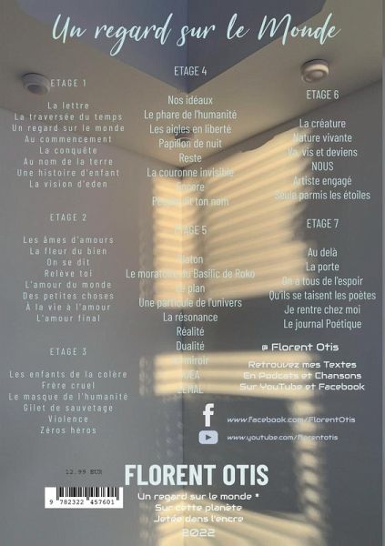 Un Regard sur le Monde est un ouvrage Ascensionnel et Poétique :Un regard sur le mondeSur cette planèteJetée dans l'encreMon regard dans ce miroirDéforméParler du temps !Sur ces quelques vers, débute le livre de Florent Otis, un auteur et chanteur rempli de réflexions profondes et d'humanité.Il façonne ses textes de façon poétique et spirituelle, souvent percutant et parfois visionnaire, il témoigne de notre présent et imagine le futur avec clairvoyance.