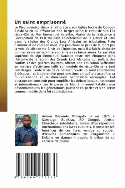 Le Dieu miséricordieux à fait grâce à son Eglise locale du Congo-Kinshasa en lui offrant un bon berger selon le coeur de son Fils Jésus-Christ, Mgr Emmanuel Kataliko, Martyr de la résistance à l'occupation de l'Est du pays et défenseur de la Justice et Paix dans la région des Grands Lacs Africains en tribulation. Plein d'amour et de compensions, n'a pas choisi la peur de la mort par la voie de silence vis-à-vis de l'injustice, mais il a fait le choix de donner sa vie en sacrifice suprême à ses biens aimés. Le sacrifice suprême de Mgr Emmanuel Kataliko reste très éloquent dans l'histoire de la région des Grands Lacs Africains qui pullule des conflits et des guerres injustes, offrant une éducation suffisante en matière d'activisme taillé sur modèle de Jésus-Christ le Seul Bon Berger. Toute la vie de ce dernier, révèle un saint emprisonné à découvrir et à apprendre pour une âme en quête d'accroître sa foi chrétienne et sa dimension nationaliste escomptée. Cet ouvrage est construit pour emplifier les débats locaux, nationaux et internationaux sur le passé de Mgr Emmanuel Kataliko que désormaistoutes les générations puissent en parler et s'en servir comme modèle de la foi et d'activisme.