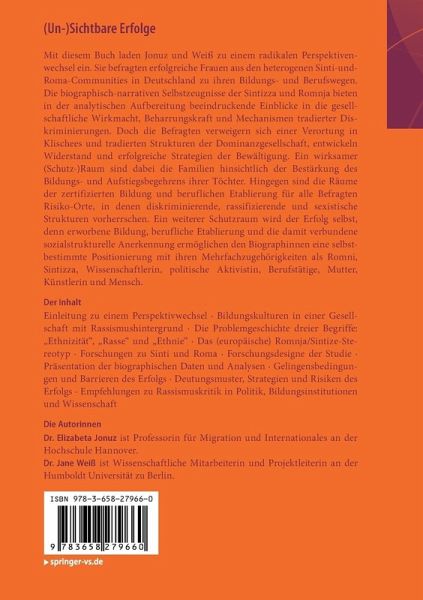 Einleitung zu einem Perspektivwechsel · Bildungskulturen in einer Gesellschaft mit Rassismushintergrund · Die Problemgeschichte dreier Begriffe: "Ethnizität", "Rasse" und "Ethnie" · Das (europäische) Romnja/Sintize-Stereotyp · Forschungen zu Sinti und Roma · Forschungsdesigne der Studie · Präsentation der biographischen Daten und Analysen · Gelingensbedingungen und Barrieren des Erfolgs · Deutungsmuster, Strategien und Risiken des Erfolgs · Empfehlungen zu Rassismuskritik in Politik, Bildungsinstitutionen und Wissenschaft