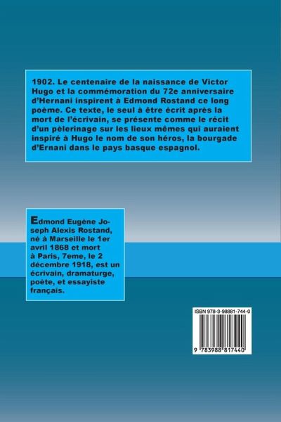 1902. Le centenaire de la naissance de Victor Hugo et la commémoration du 72e anniversaire d'Hernani inspirent à Edmond Rostand ce long poème. Ce texte, le seul à être écrit après la mort de l'écrivain, se présente comme le récit d'un pèlerinage sur les lieux mêmes qui auraient inspiré à Hugo le nom de son héros, la bourgade d'Ernani dans le pays basque espagnol.