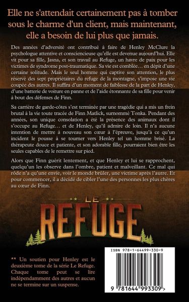 Elle ne s'attendait pas à tomber sous le charme d'un patient, mais maintenant, elle a besoin de lui plus que jamais. Des années d'adversité ont contribué à faire de Henley McClure la psychologue attentive et consciencieuse qu'elle est devenue aujourd'hui. Elle vit pour sa fille, Jasna, et son travail au Refuge, un havre de paix pour les victimes de syndrome post-traumatique. Sa vie est comblée... en dépit d'une certaine solitude. Mais le seul homme qui captive son attention, le plus réservé des sept propriétaires du refuge de la montagne, s'impose une vie coupée des autres. Il suffira d'un moment de faiblesse de la part de Henley, d'une batterie de voiture en panne et de l'aide étonnante de sa fille pour venir à bout des défenses de Finn. Sa carrière de garde-côtes s'est terminée par une tragédie qui a mis un frein brutal à la vie toute tracée de Finn Matlick, surnommé Tonka. Pendant des années, son unique consolation a été la présence des animaux dont il s'occupe au Refuge... et de Henley, qu'il admire de loin. Il n'a aucune intention de mettre à nouveau son c¿ur à l'épreuve, jusqu'à ce qu'un incident le pousse à se tourner vers Henley tel un homme brisé. La thérapeute douce et patiente, et son adorable fille, pourraient bien être les seules capables de le remettre sur pied. Alors que Finn guérit lentement, et que Henley et lui se rapprochent, quelqu'un les observe dans l'ombre, patient et malveillant. Ce mal qui rôde n'a qu'une envie, voir le monde brûler, une victime après l'autre. Et pour commencer, il a décidé de cibler l'une des personnes les plus chères au c¿ur de Finn. ** Un soutien pour Henley est le deuxième tome de la série Le Refuge. Chaque tome peut se lire indépendamment des autres et aucun ne se termine sur un suspense.