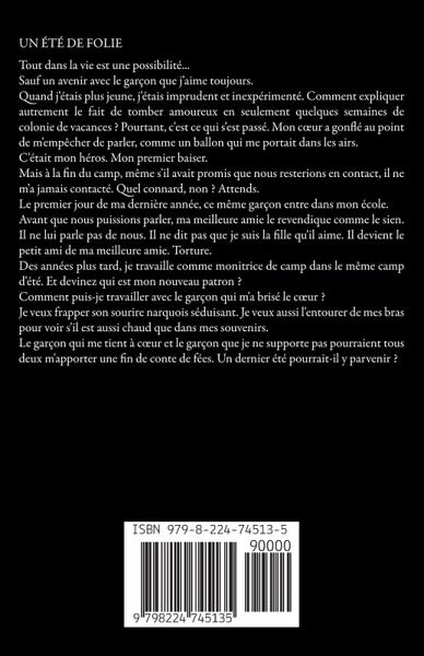 Tout dans la vie est une possibilité... Sauf un avenir avec le garçon que j'aime toujours. Quand j'étais plus jeune, j'étais imprudent et inexpérimenté. Comment expliquer autrement le fait de tomber amoureux en seulement quelques semaines de colonie de vacances ? Pourtant, c'est ce qui s'est passé. Mon c¿ur a gonflé au point de m'empêcher de parler, comme un ballon qui me portait dans les airs. C'était mon héros. Mon premier baiser. Mais à la fin du camp, même s'il avait promis que nous resterions en contact, il ne m'a jamais contacté. Quel connard, non ? Attends. Le premier jour de ma dernière année, ce même garçon entre dans mon école. Avant que nous puissions parler, ma meilleure amie le revendique comme le sien. Il ne lui parle pas de nous. Il ne dit pas que je suis la fille qu'il aime. Il devient le petit ami de ma meilleure amie. Torture. Des années plus tard, je travaille comme monitrice de camp dans le même camp d'été. Et devinez qui est mon nouveau patron ? Comment puis-je travailler avec le garçon qui m'a brisé le c¿ur ? Je veux frapper son sourire narquois séduisant. Je veux aussi l'entourer de mes bras pour voir s'il est aussi chaud que dans mes souvenirs. Le garçon qui me tient à c¿ur et le garçon que je ne supporte pas pourraient tous deux m'apporter une fin de conte de fées. Un dernier été pourrait-il y parvenir ?