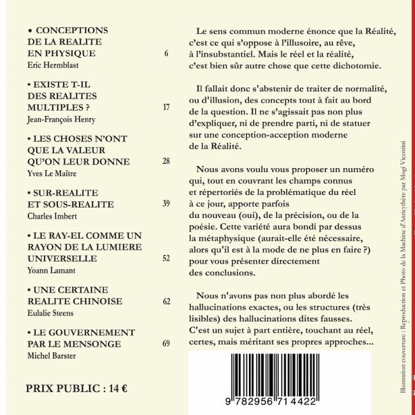 L'idée commune veut que la réalité, c'est ce qui s'oppose à l'illusoire, au rêve, au manque de substance. La problématique du réel débouche sur des idées de normalité, bien que certaines opinions puissent prétendre que le réel est lui-même illusoire. ce numéro aborde, cite et couvre les champs de la problématique du réel, philosophiquement et physiquement.