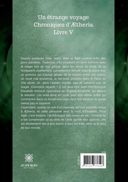 Depuis quelques mois, Mars, Abel et Agie coulent enfin des jours paisibles. Toutefois, s¿ils croyaient en avoir terminé avec la magie lors de leur périple dans les terres du Nord, ils se trompaient cruellement. La rencontre fortuite avec le jeune Kaï, un grimoire qui n¿aurait jamais dû se trouver entre ses mains, un rituel mal prononcé, et les voilà projetés dans le Paris du 20e siècle. Or, dans l¿ancien monde, pas de sorciers, pas de magie. Comment repartir ? C¿est peut-être bien l¿archéologue Élisabeth Armond, spécialiste de l¿Égypte Ancienne, qui détient la solution. Les voilà donc en route pour leur ultime quête qui commence dans ce mystérieux pays dont leur époque ne garde même pas le souvenir. Cependant, quelqüun voit d¿un mauvais ¿il leur possible retour à Ætheria, et cette personne veut la mort d¿Élisabeth. Pour Agie, c¿est évident, l¿archéologue doit rester en vie : l¿Oracle lui a fait comprendre qüau-delà de l¿aide qüelle leur apporte, elle est étroitement liée à leur avenir à tous les trois, ainsi qüà celui de leur monde.