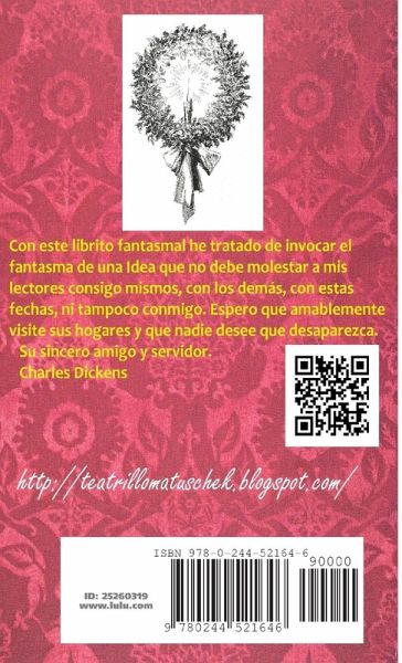 Con este librito fantasmal he tratado de invocar el fantasma de una Idea que no debe molestar a mis lectores consigo mismos, con los demás, con estas fechas, ni tampoco conmigo. Espero que amablemente visite sus hogares y que nadie desee que desaparezca. Su sincero amigo y servidor. Charles Dickens